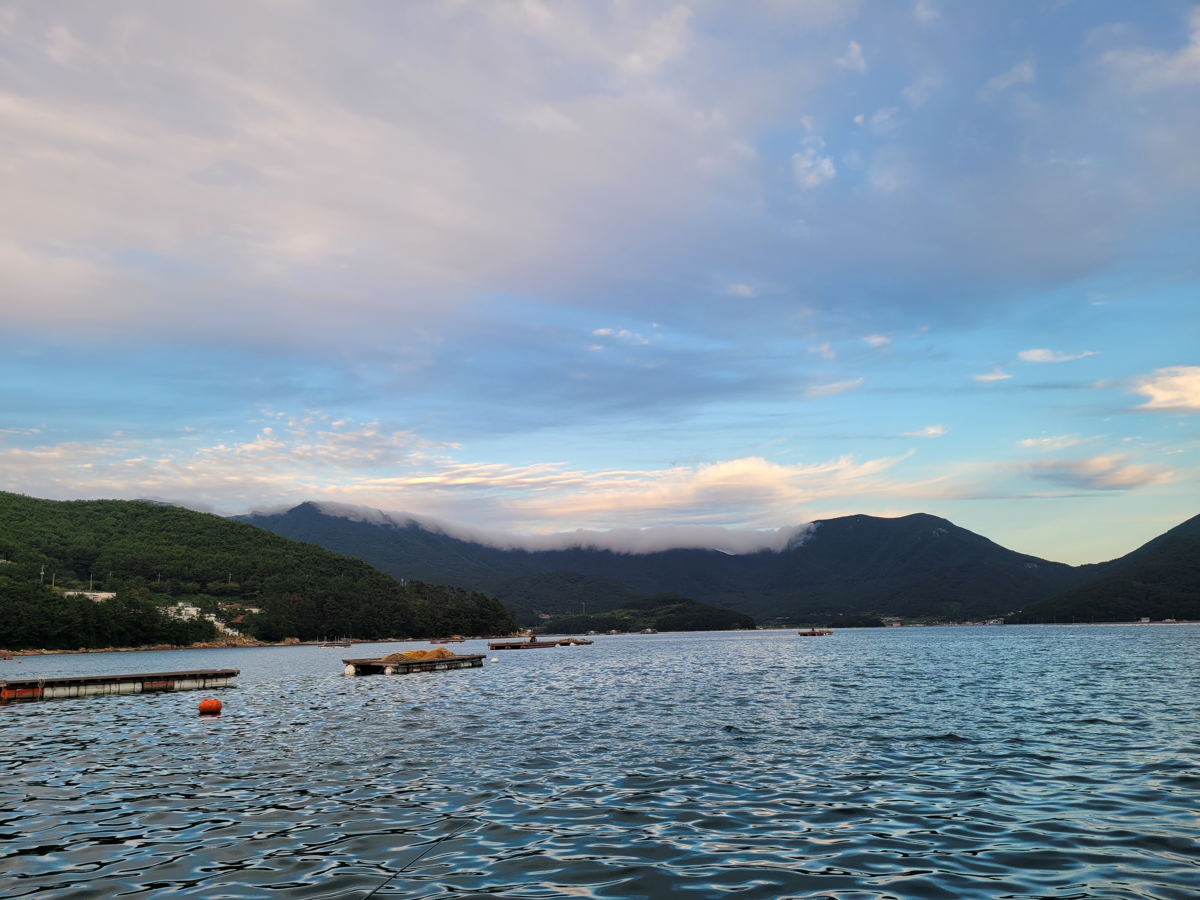 구름이 신기하게 걸쳐 있습니다.