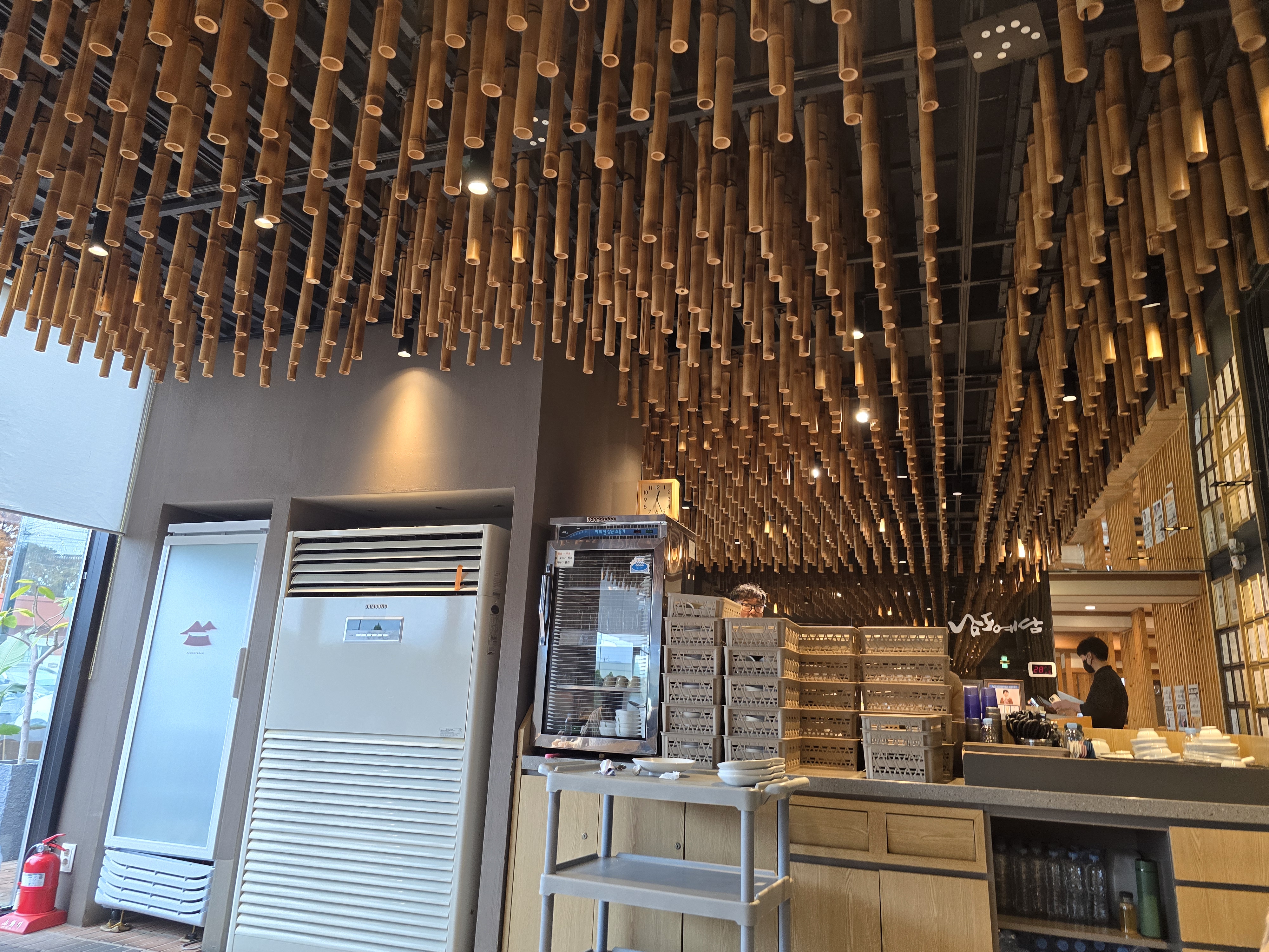 천장에 대나무가 박혀 있네요