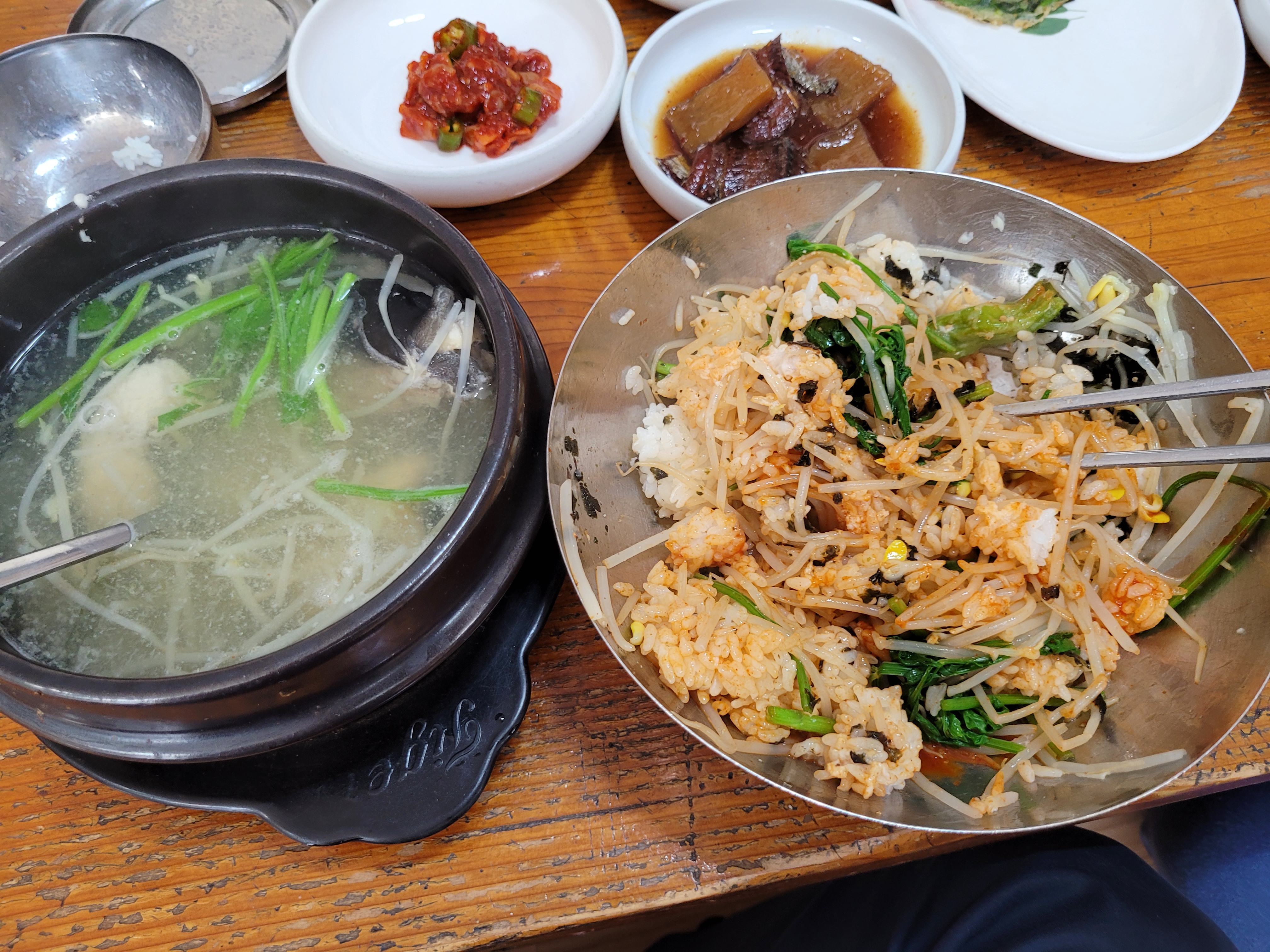 콩나물 건져서 밥부터 비벼 먹으면서