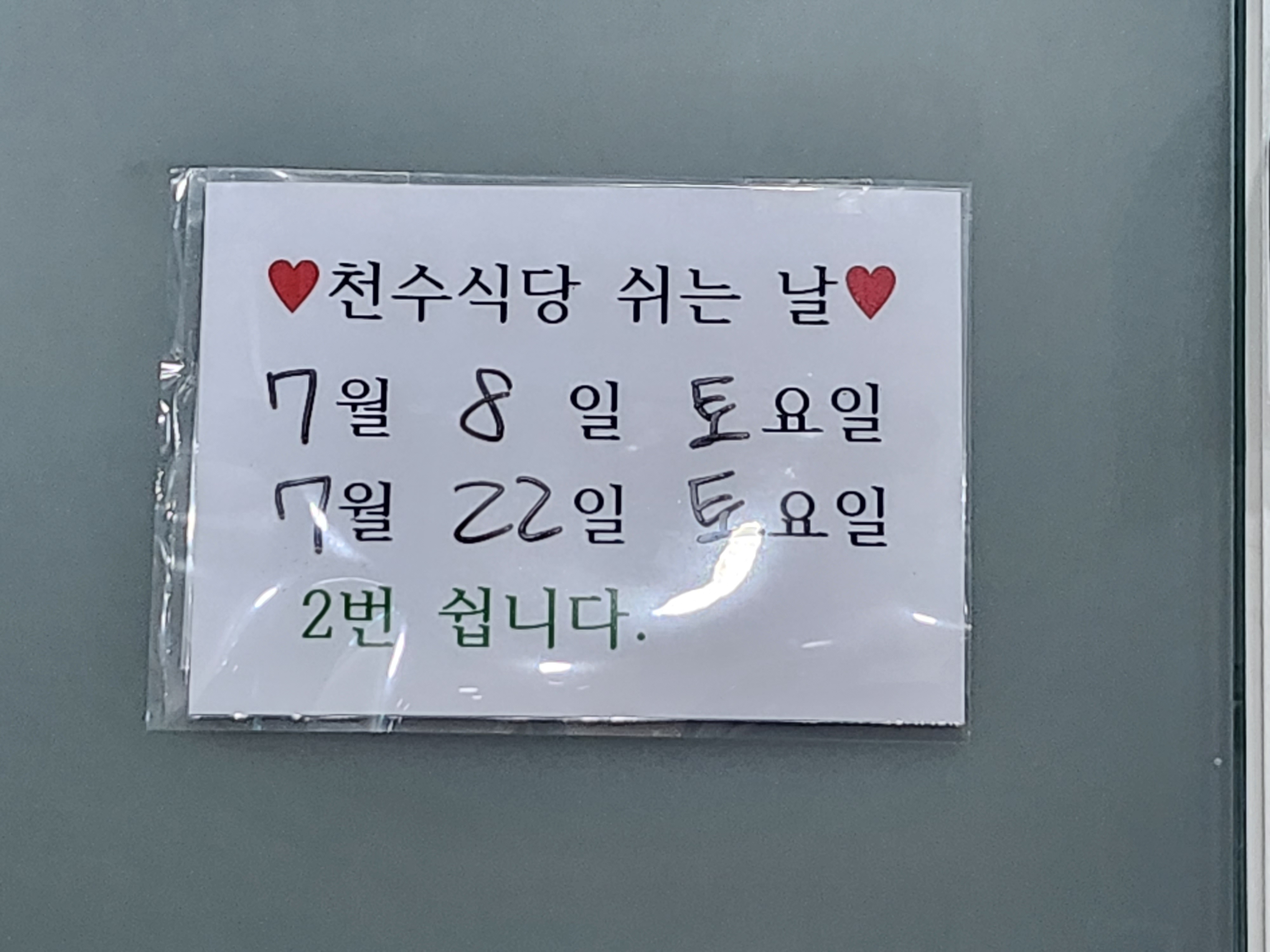 천수식당 쉬는날이 거의 없었는데