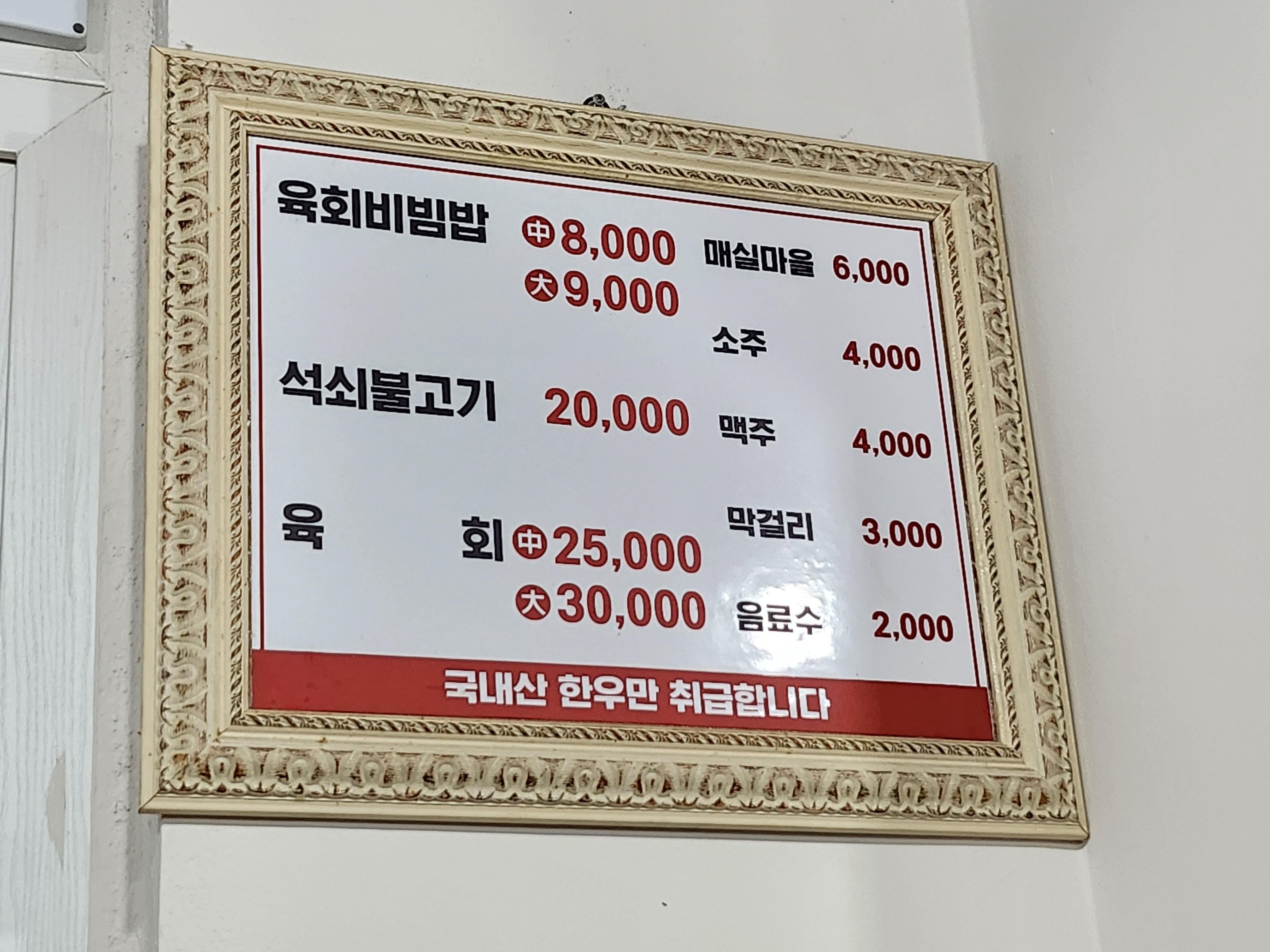 육회비빔밥이 아래 사진과 같이 8천원이었는데