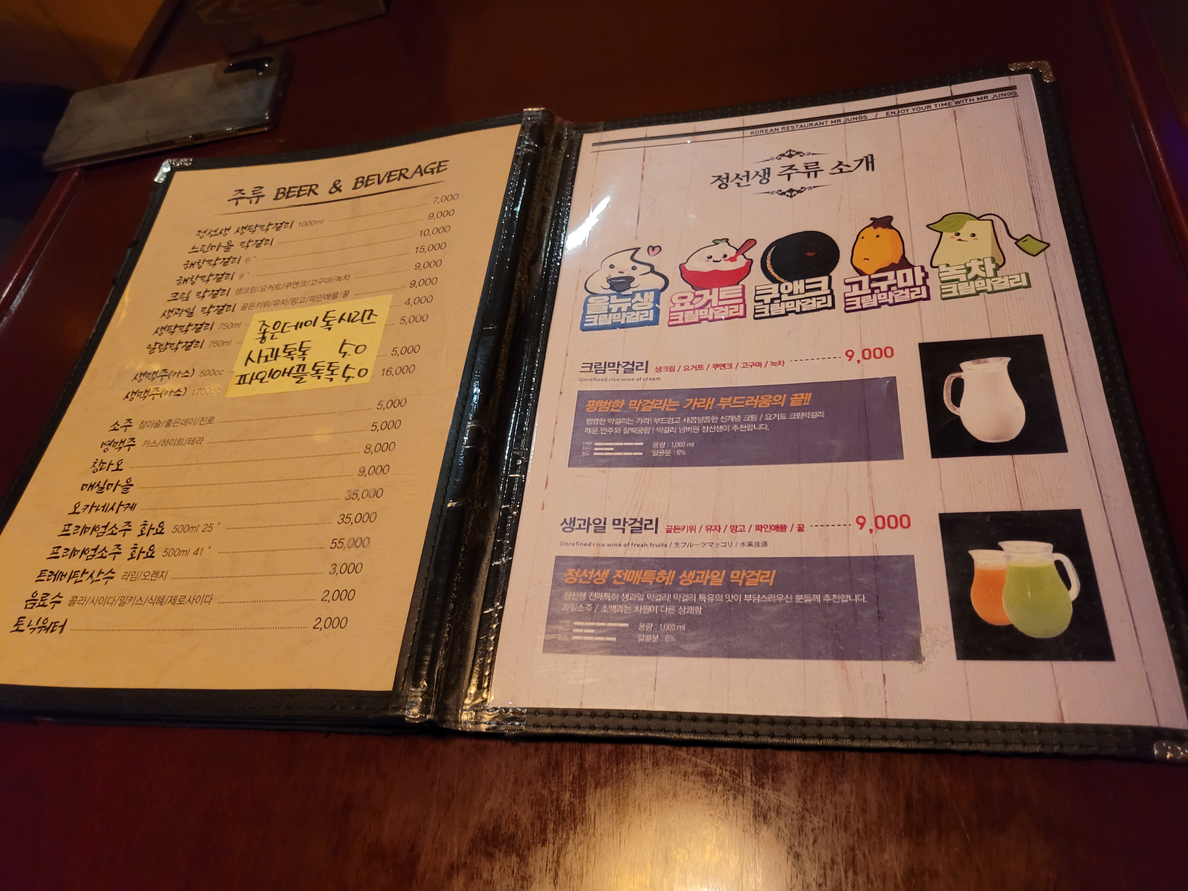 정선생생막걸리가 비싼편이네요