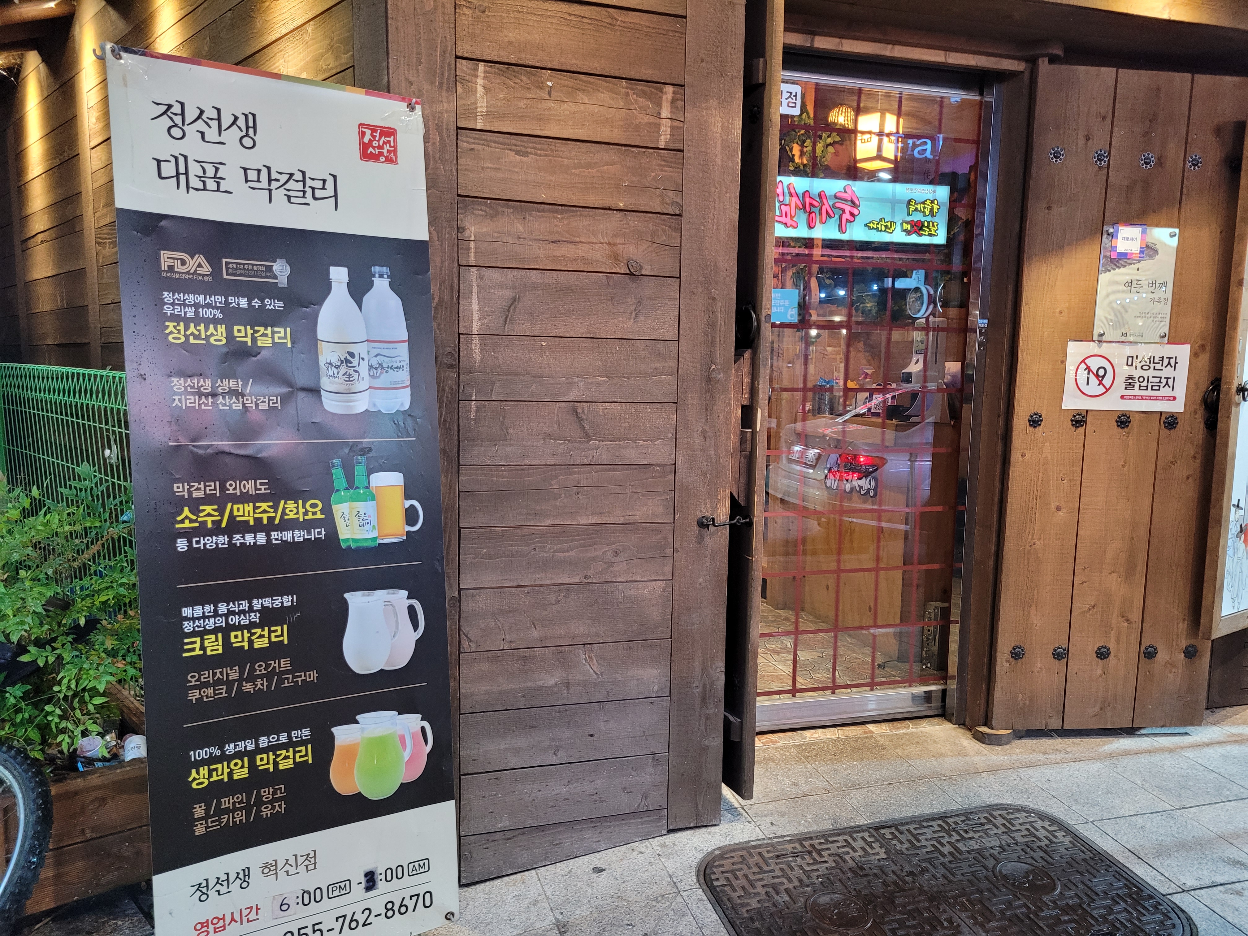 입구에 막걸리 있다고 광고 합니다.