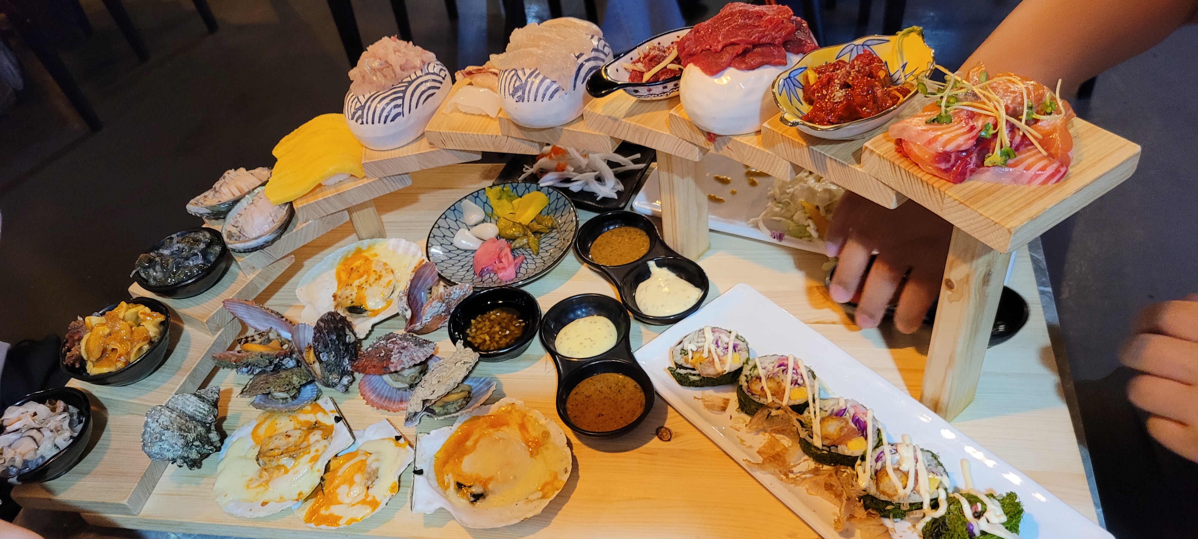 푸짐하게 해산물, 육회, 연어, 싱싱한 회 등등