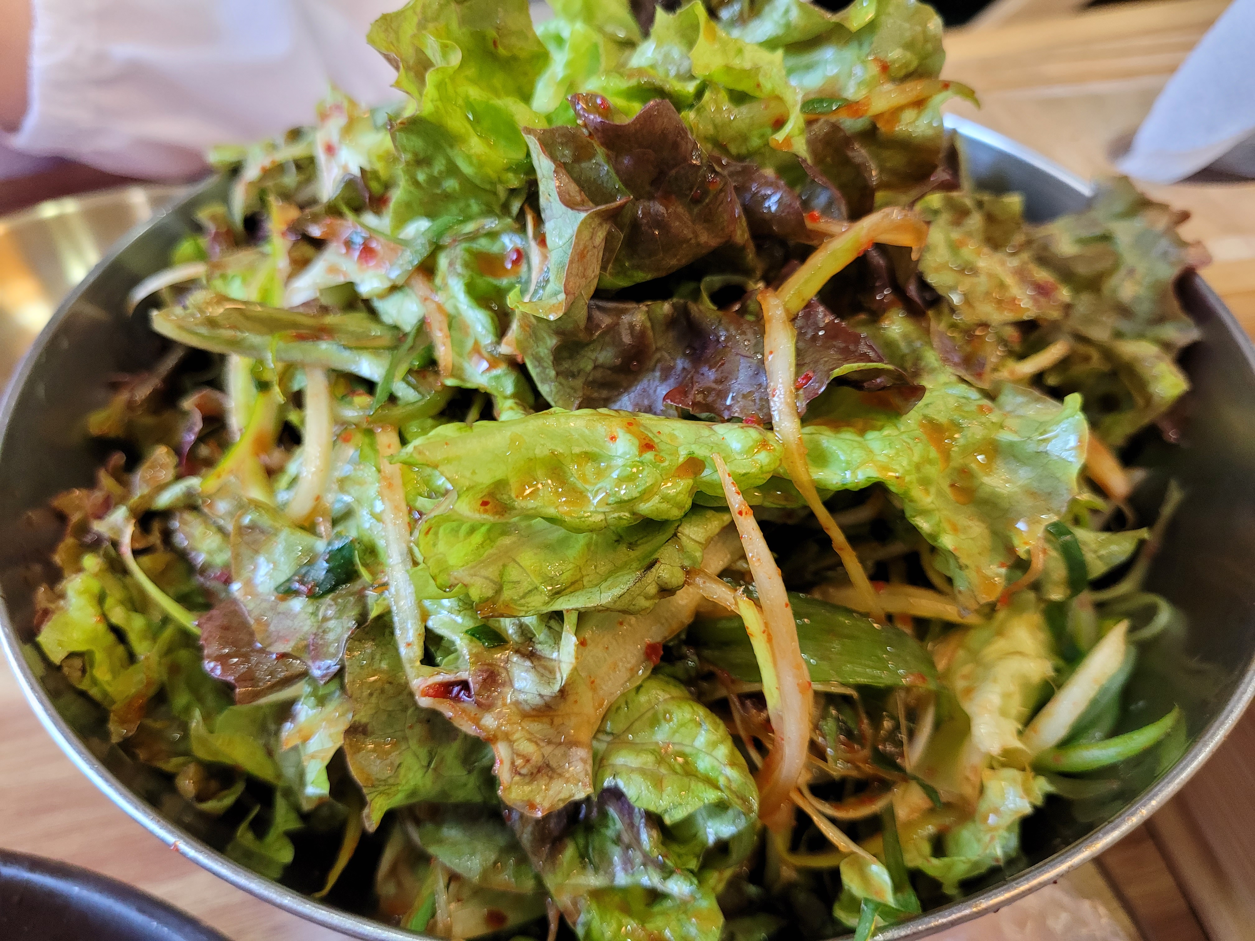 이그릇에 야채를 들어 먹어라는
