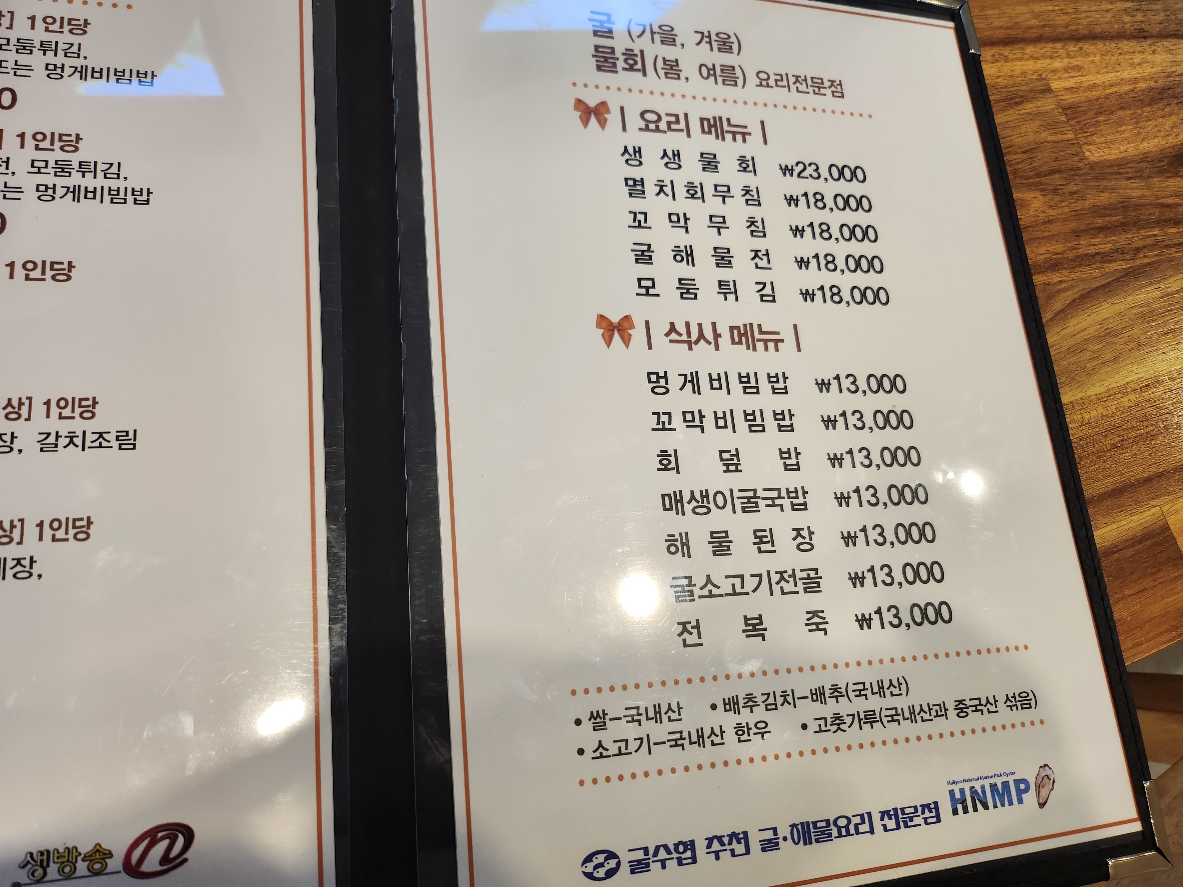 생생물회와 멸치회무침, 굴해물전, 모둠튀김