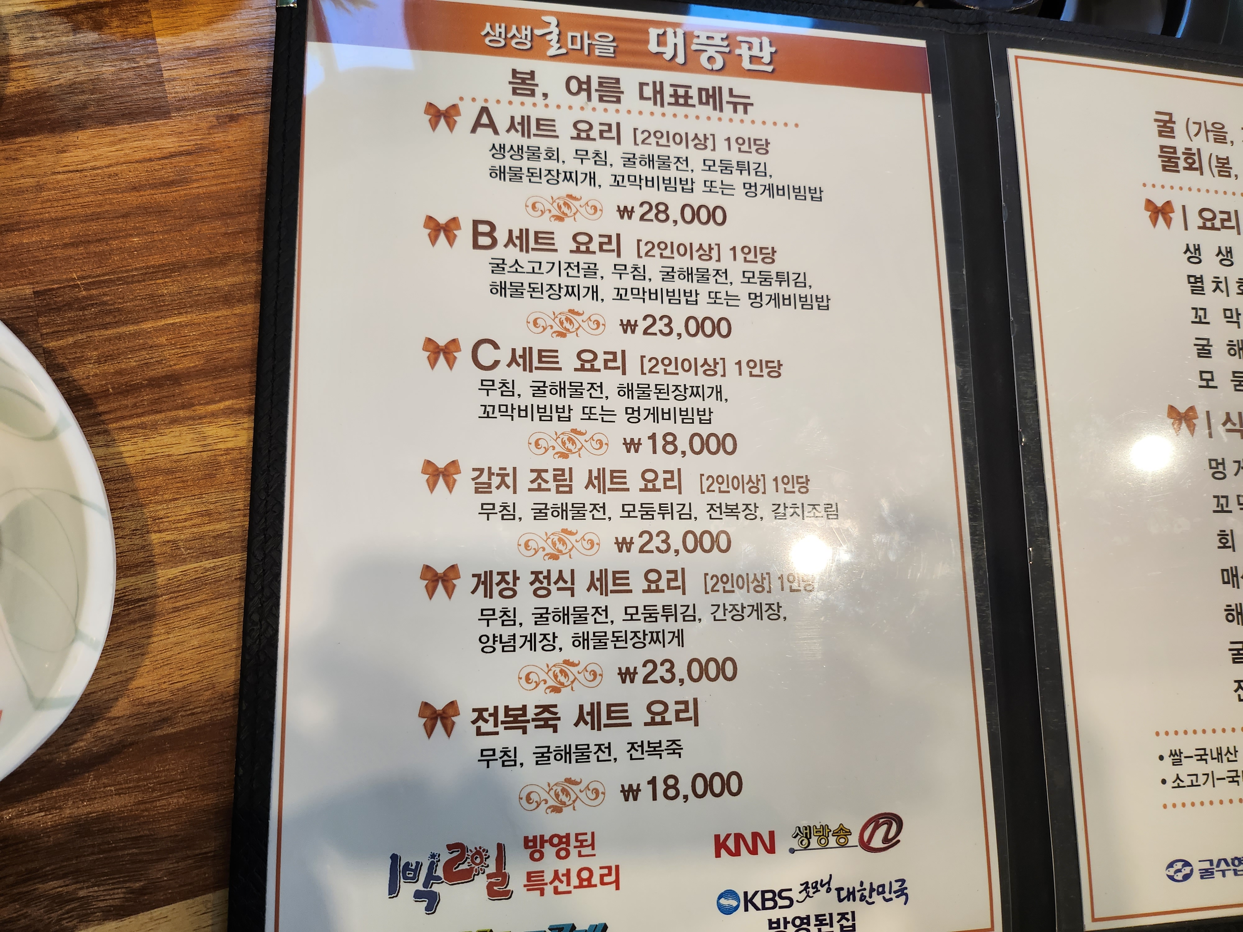 A셋트 4개에 굴소고기전골을 추가로 시켰어요