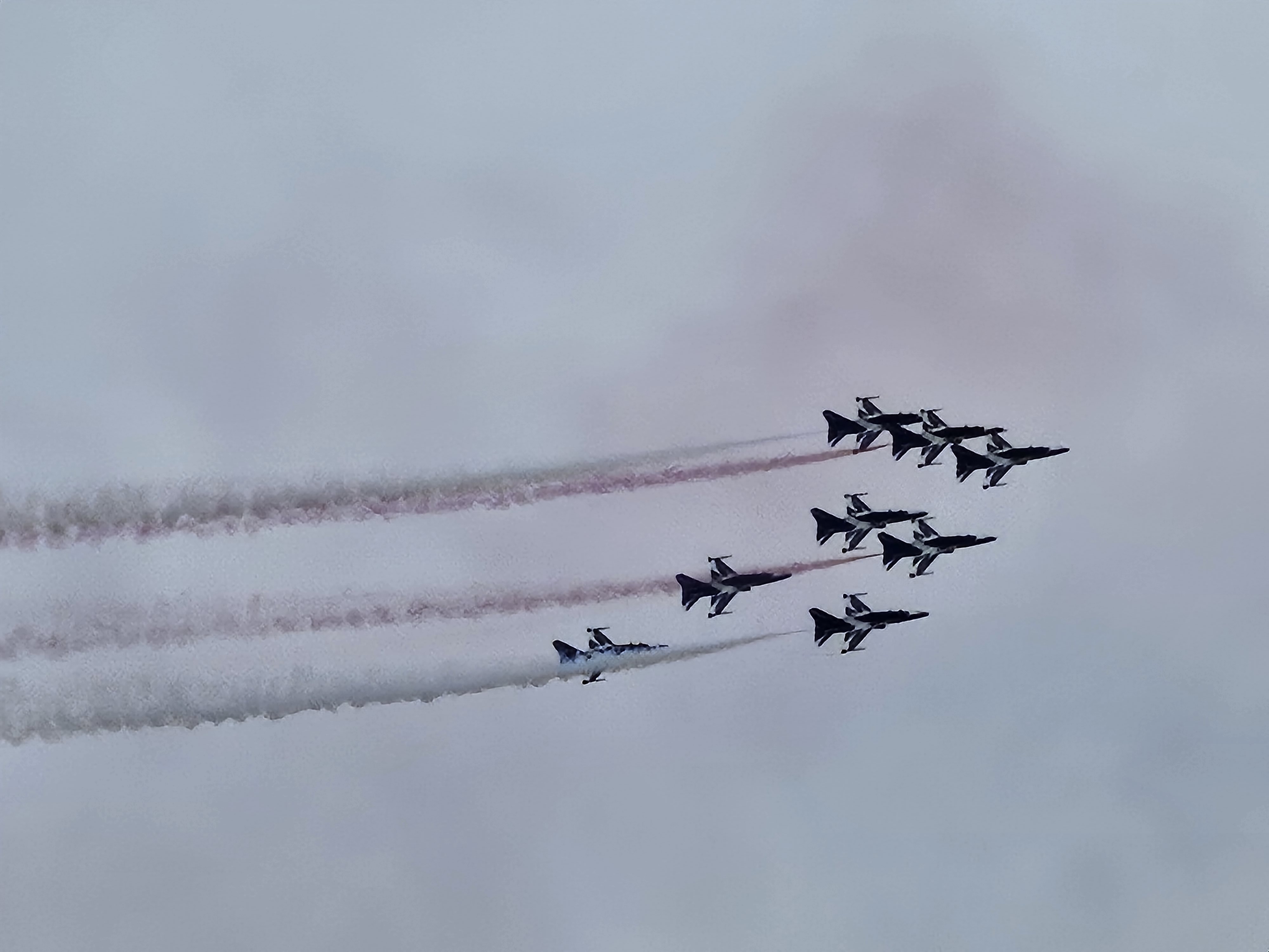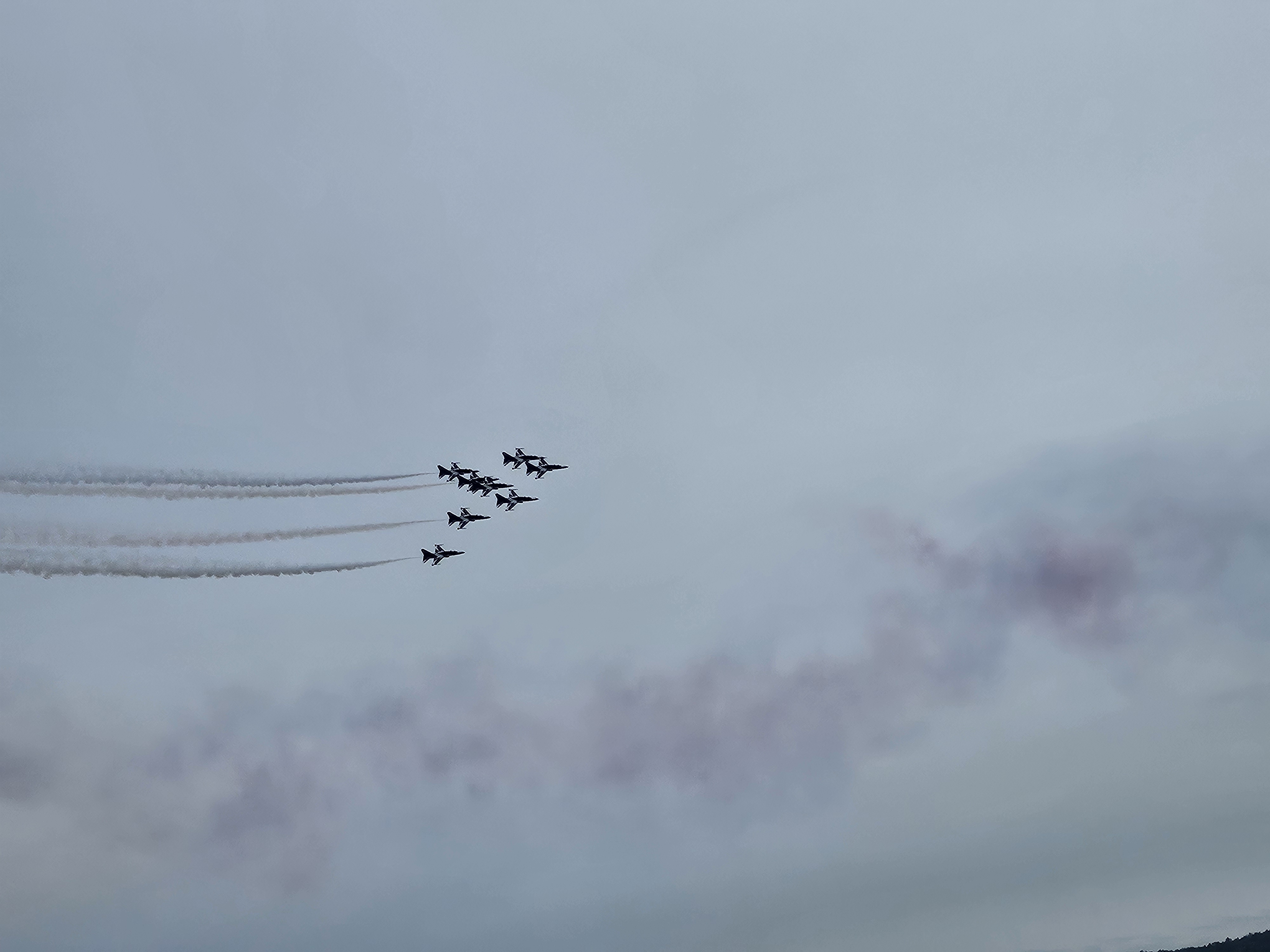 블랙이글스팀이 곡예비행을 하였습니다.