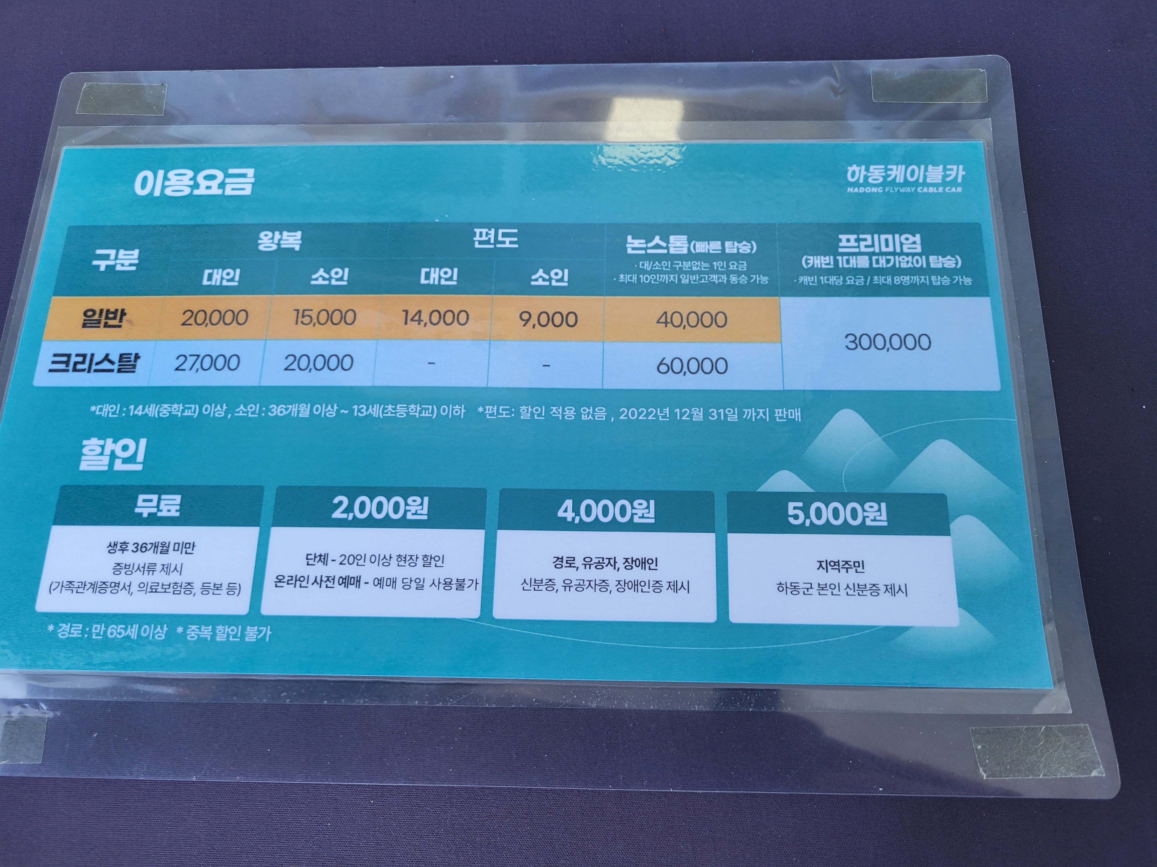 그외 경노나 장애인 할인 받을라면 증명서 있어야 됩니다.