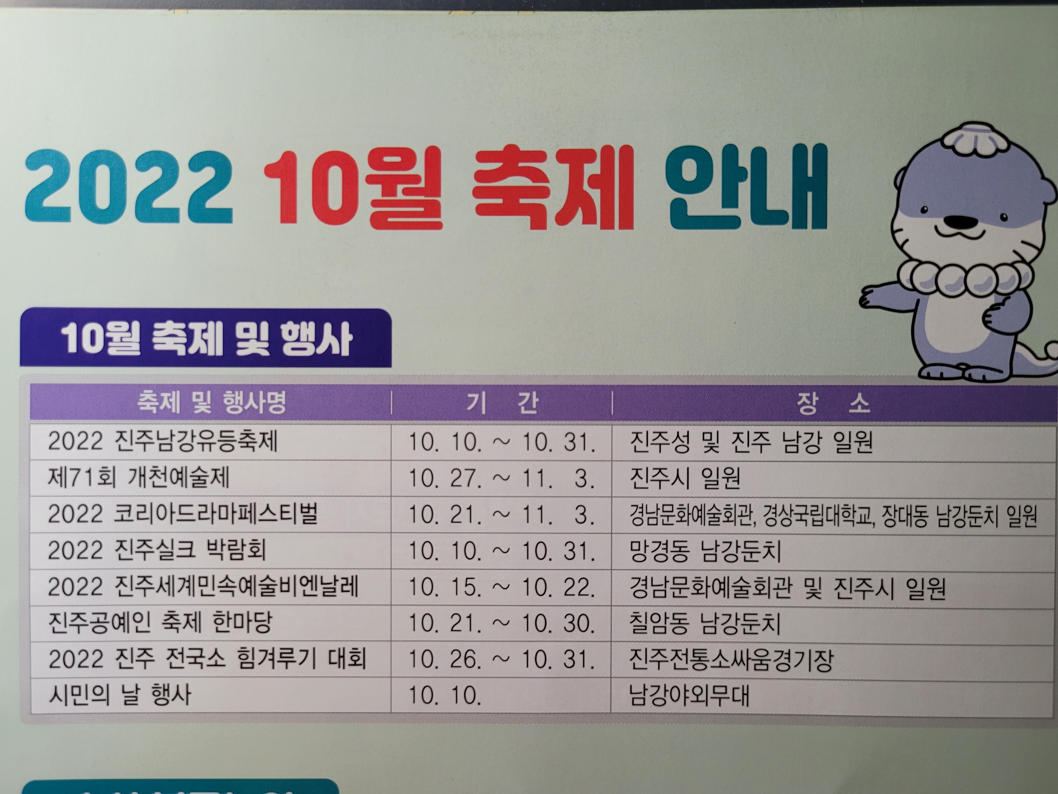진주시 2022년 10월 축제일정