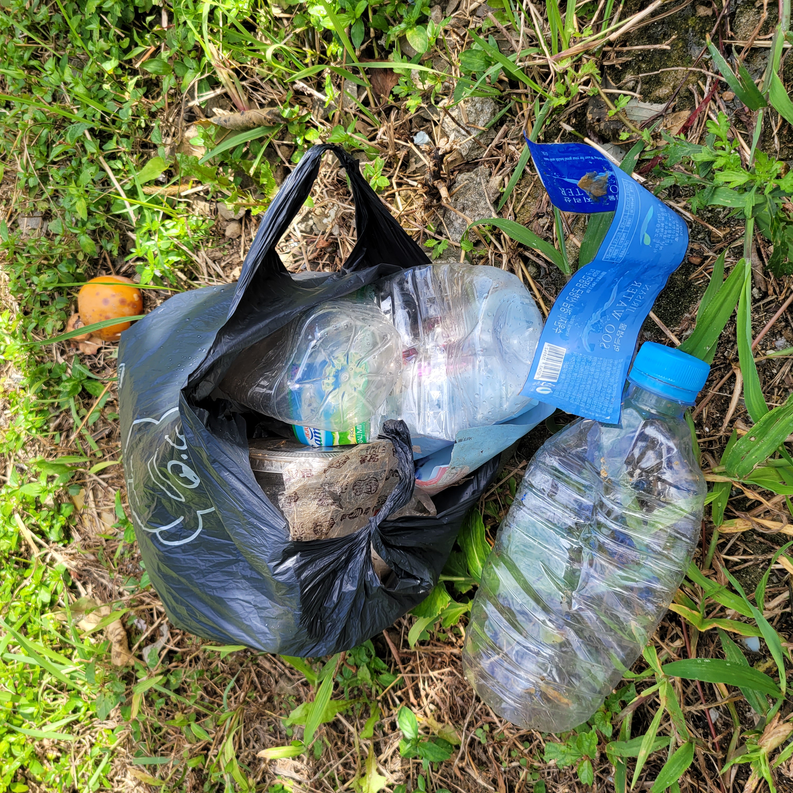 둘레길 올라가는길에 얼마 지나지 않아 버려진 쓰레기 봉지가 있어 줍줍