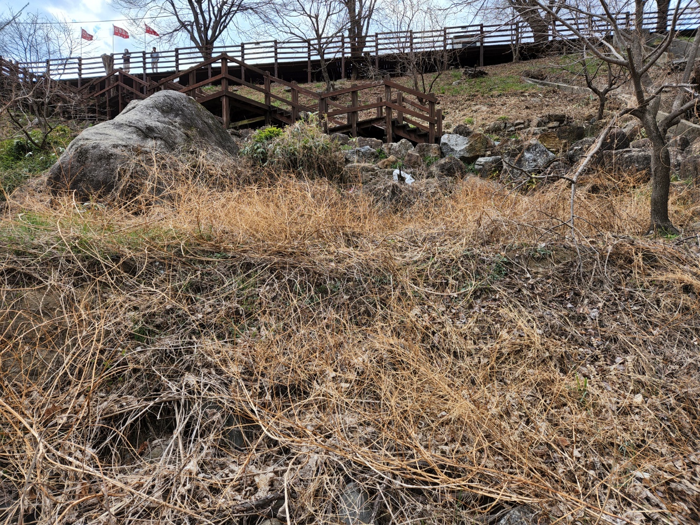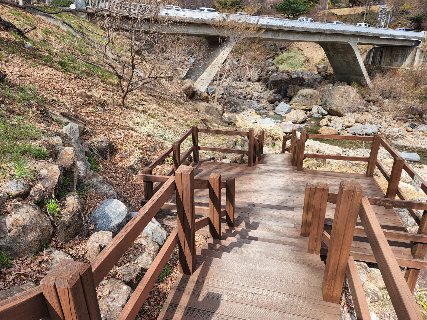 주차장 앞에서 테크계단을 내려가서 시작하시면 더 길게 돌아 볼수 있습니다.