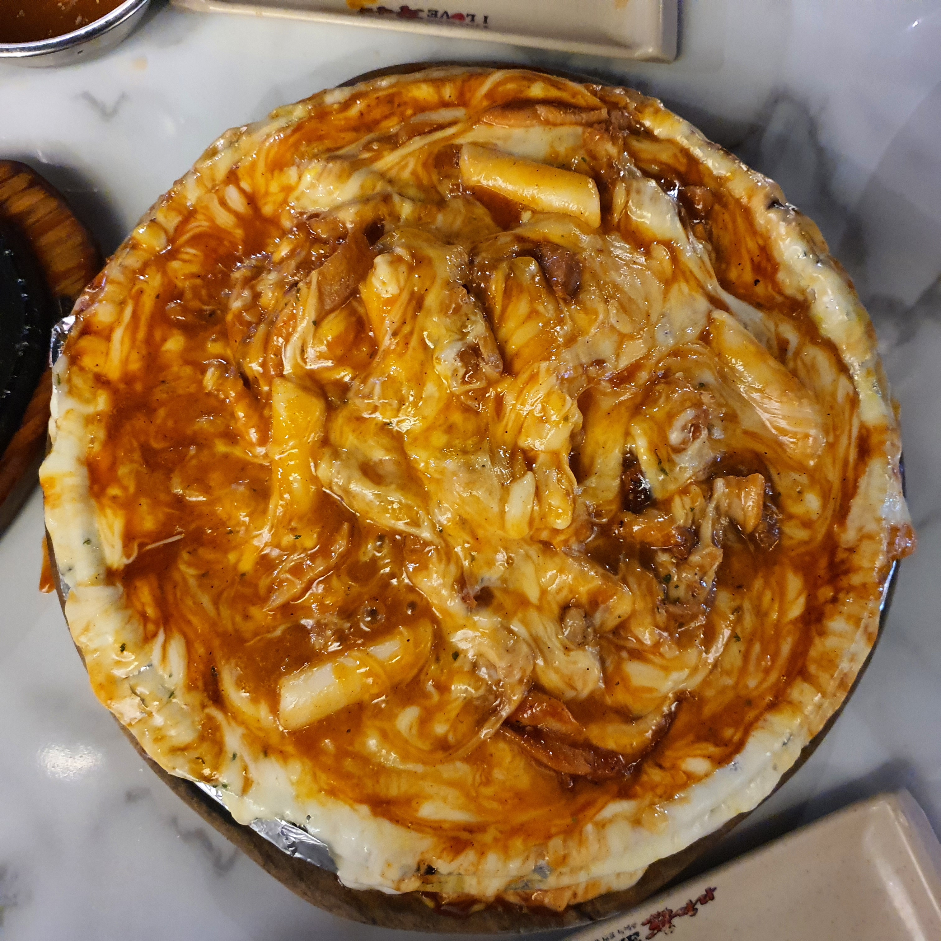 나오자마자 치즈를 저어서 섞어 버렸네요