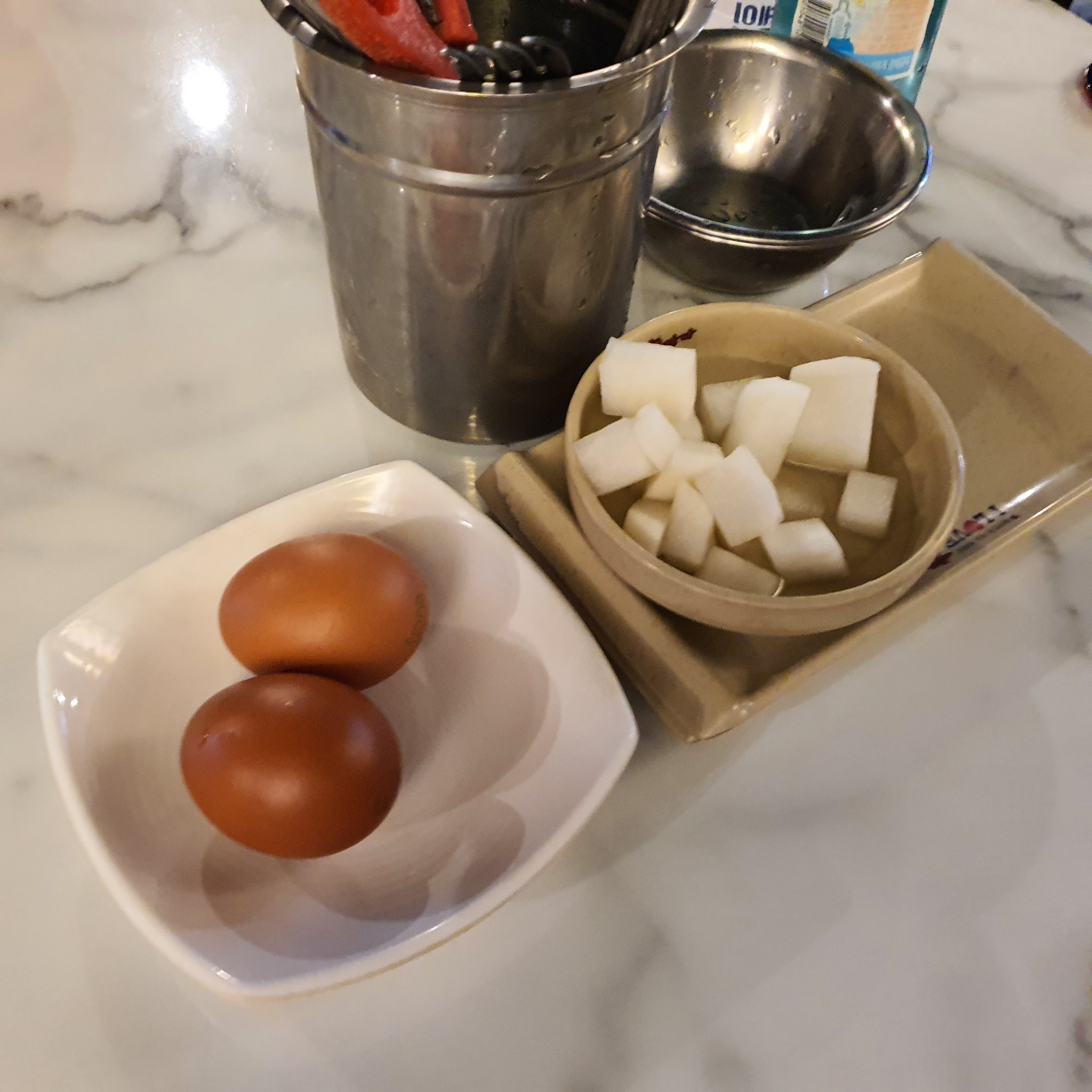 날계란은 이집의 특징입니다.