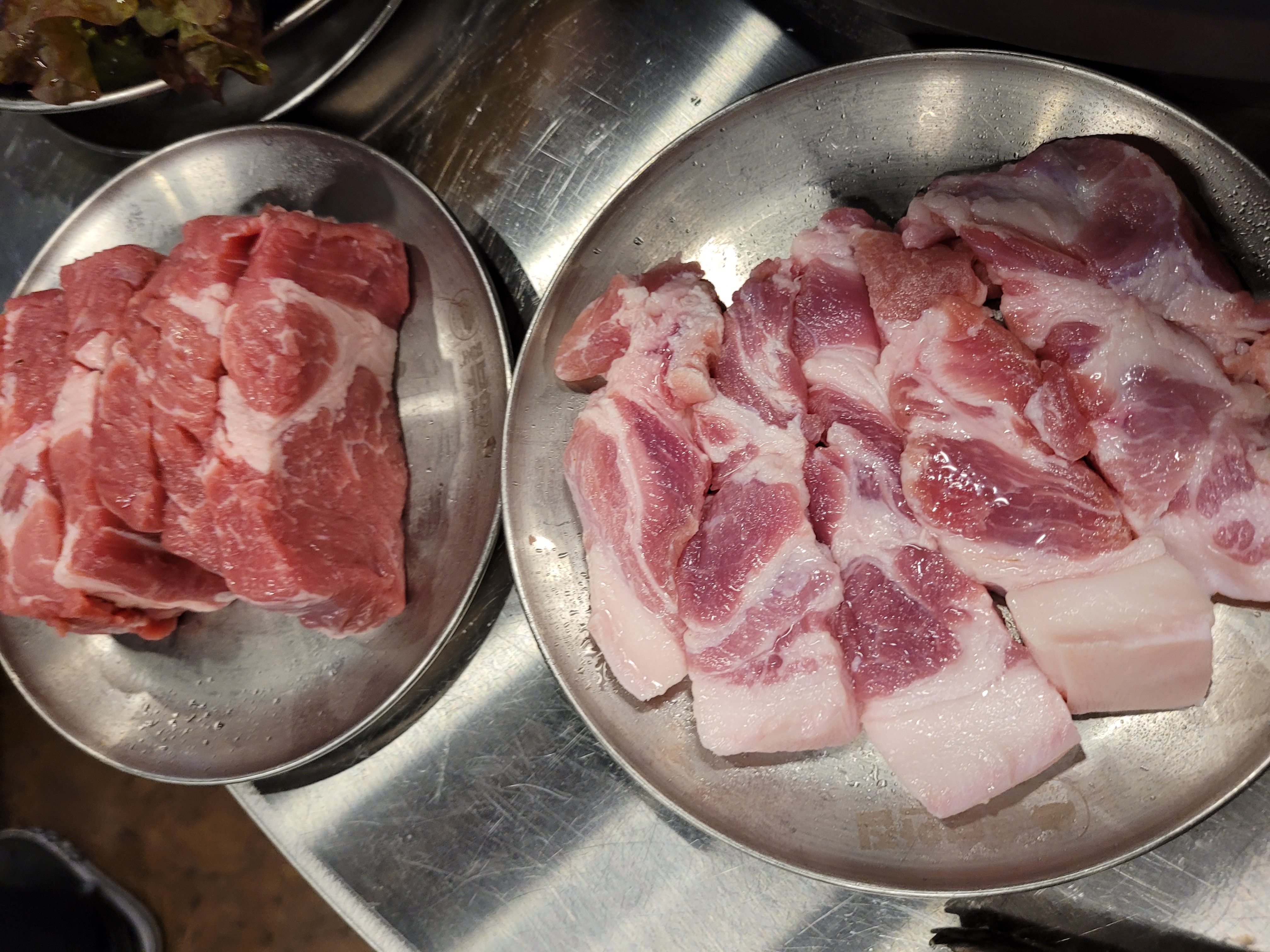 육접목살과 숙성삼겹살 시켰어요