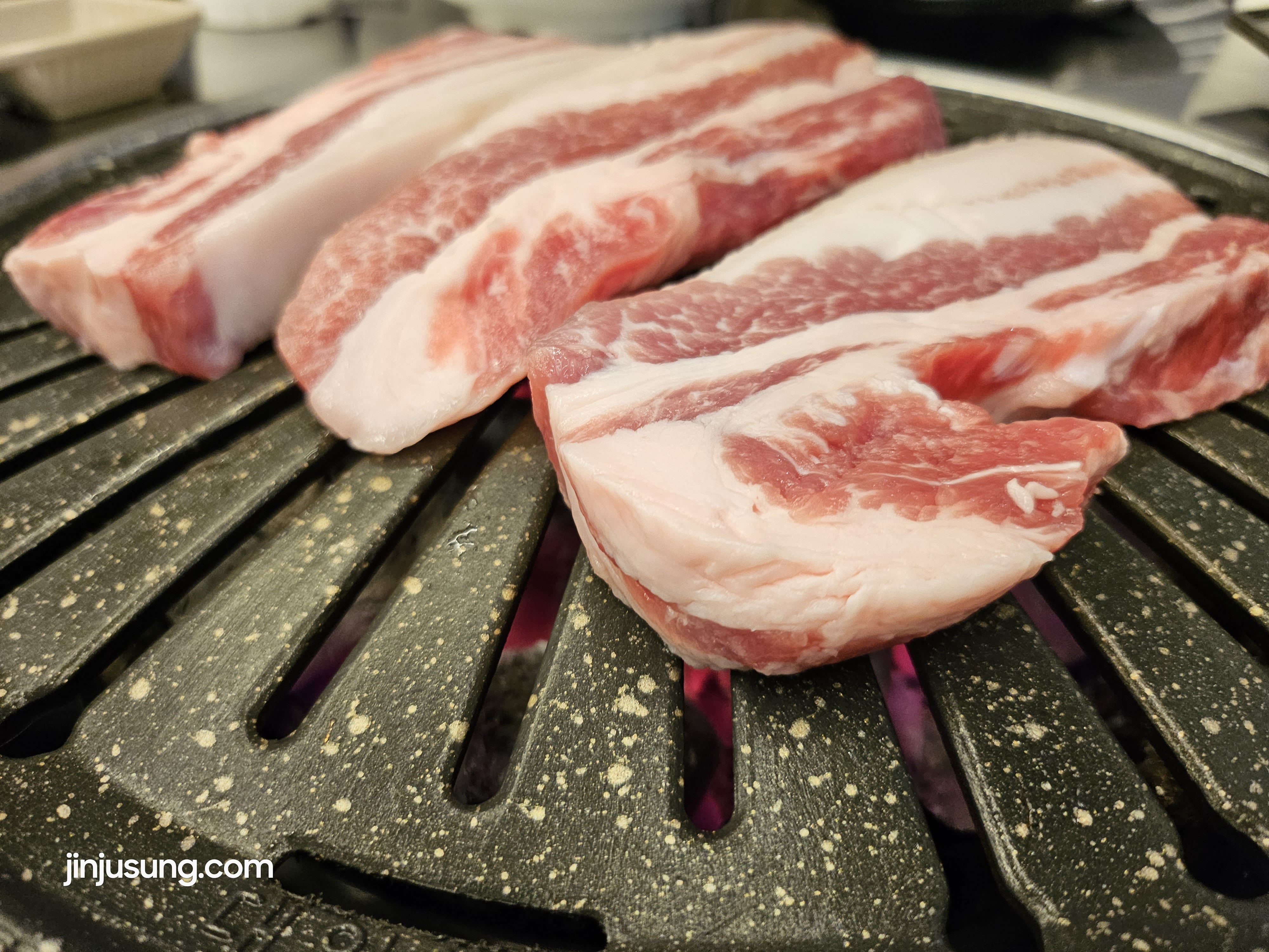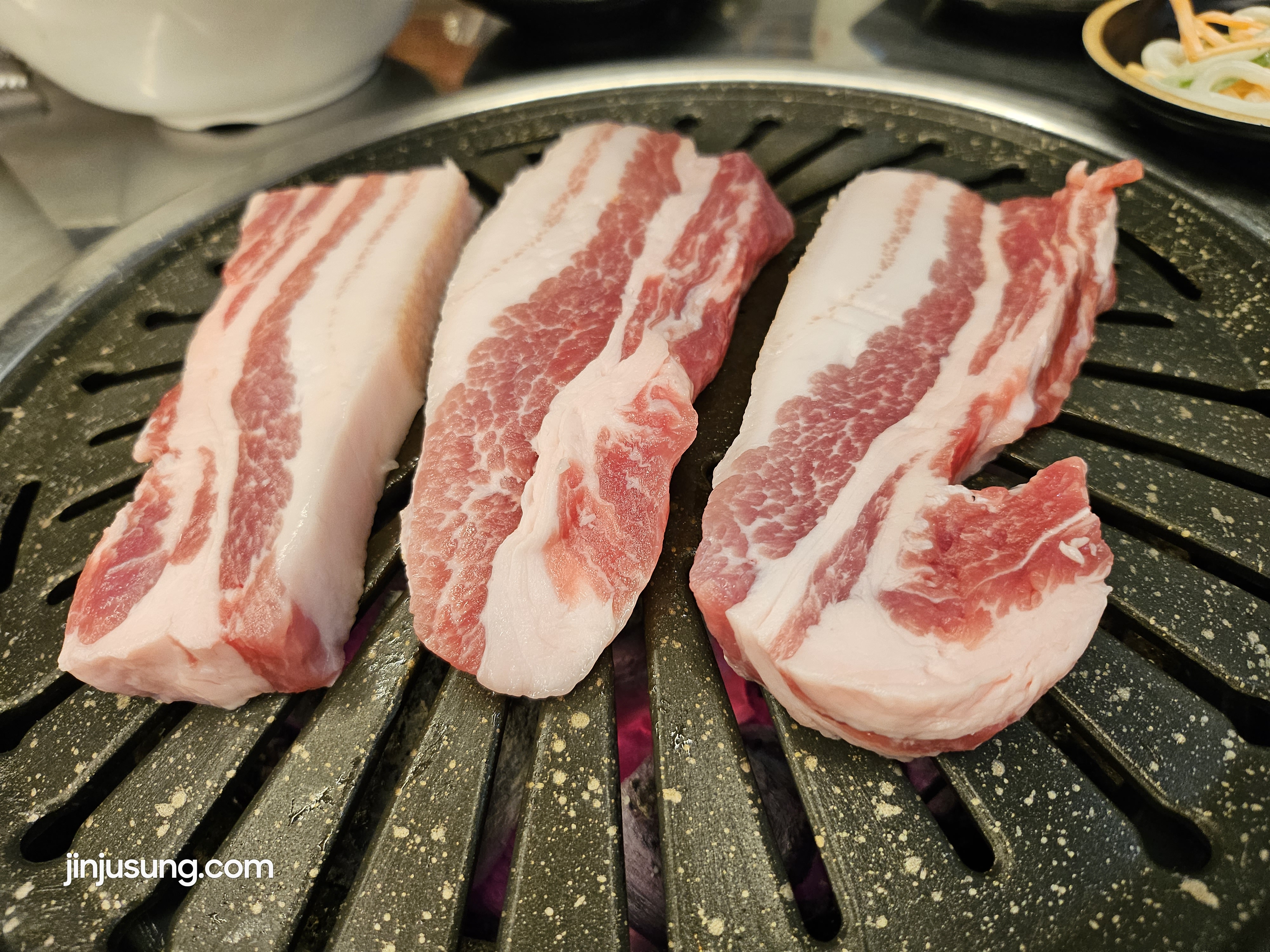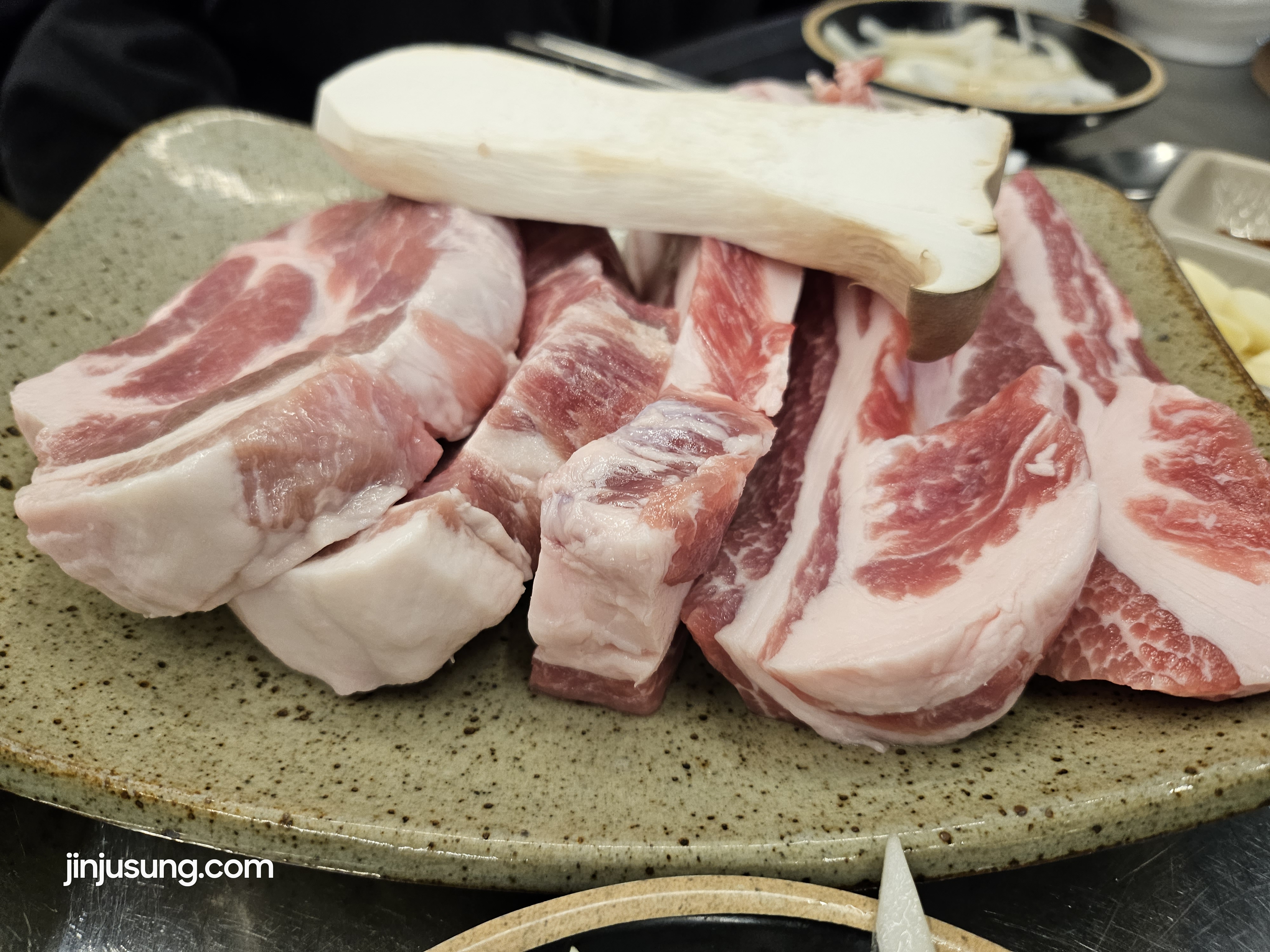 우리는 사람수데로 삼겹살 3개에 목살 2개 주문하고