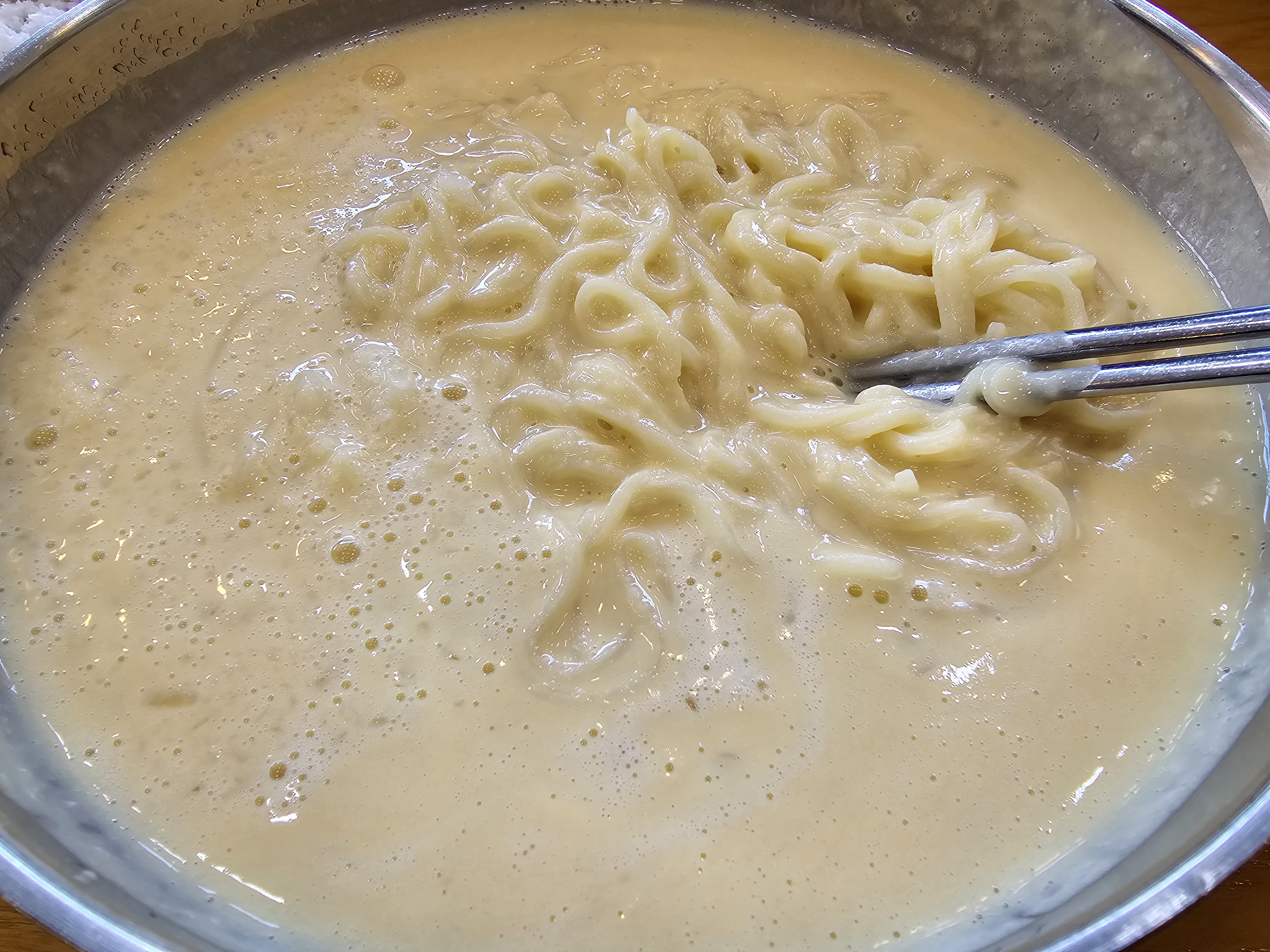 맷돌로 간 콩국물에