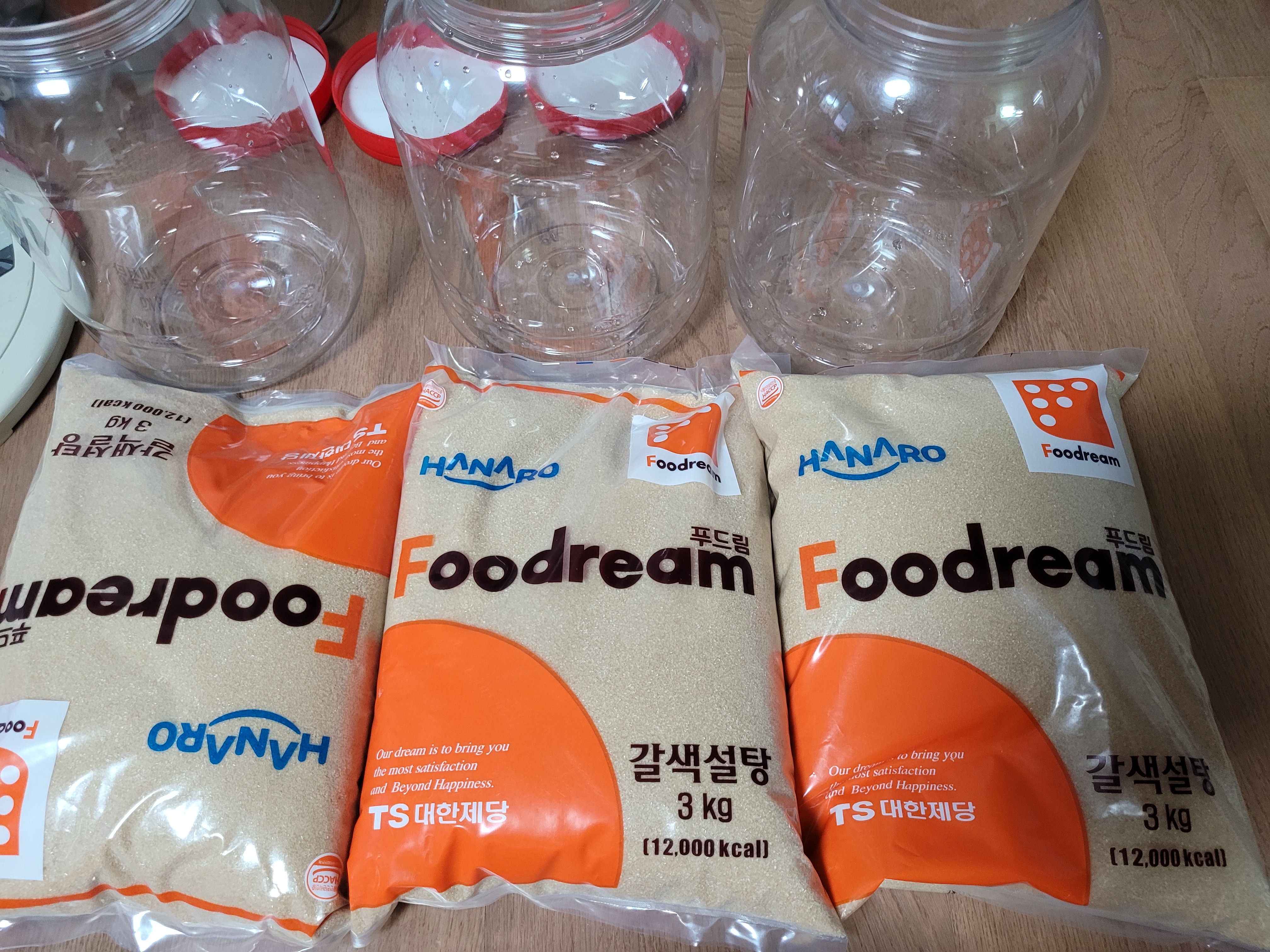 설탕을 3리터 넣습니다.
