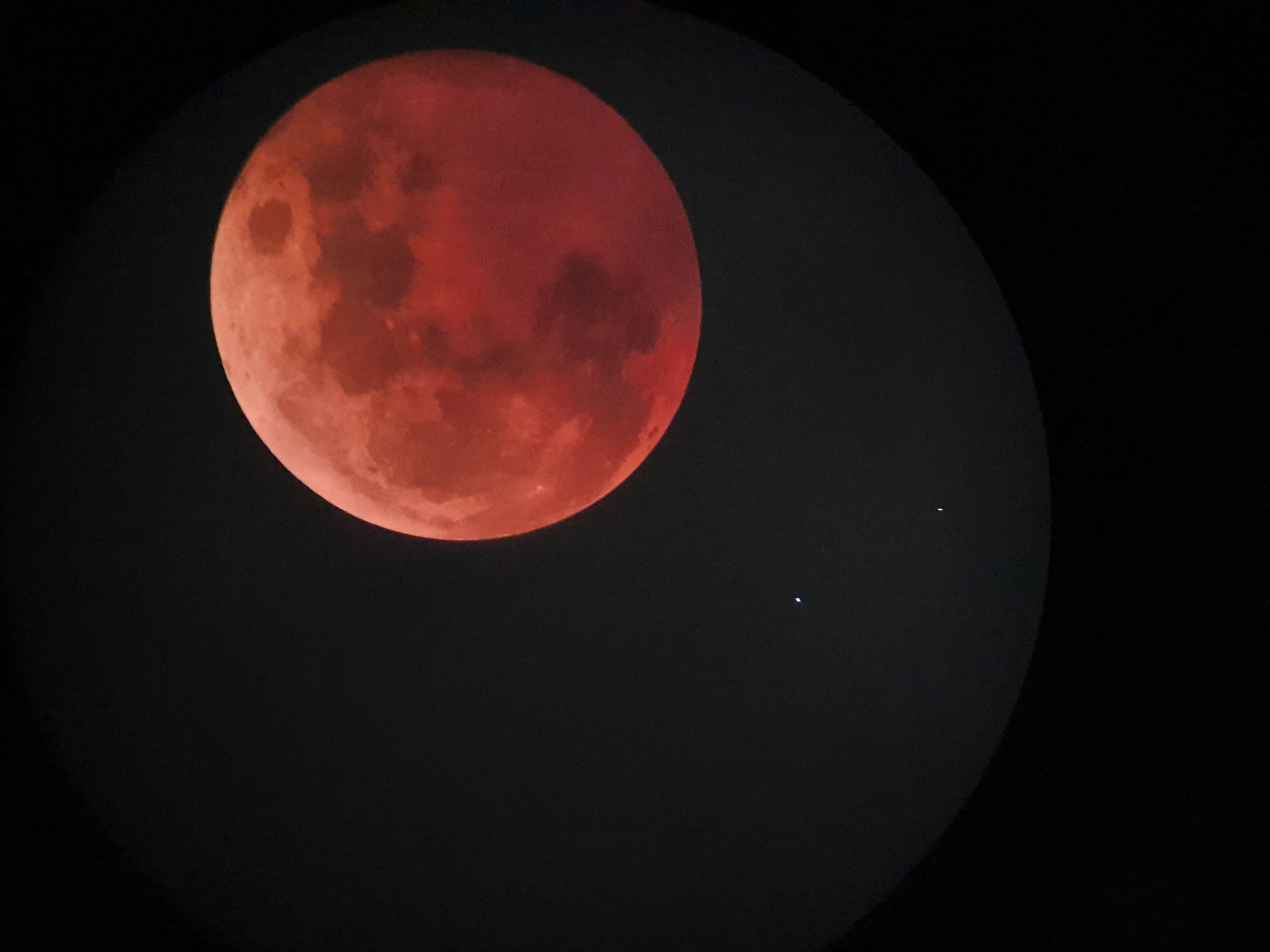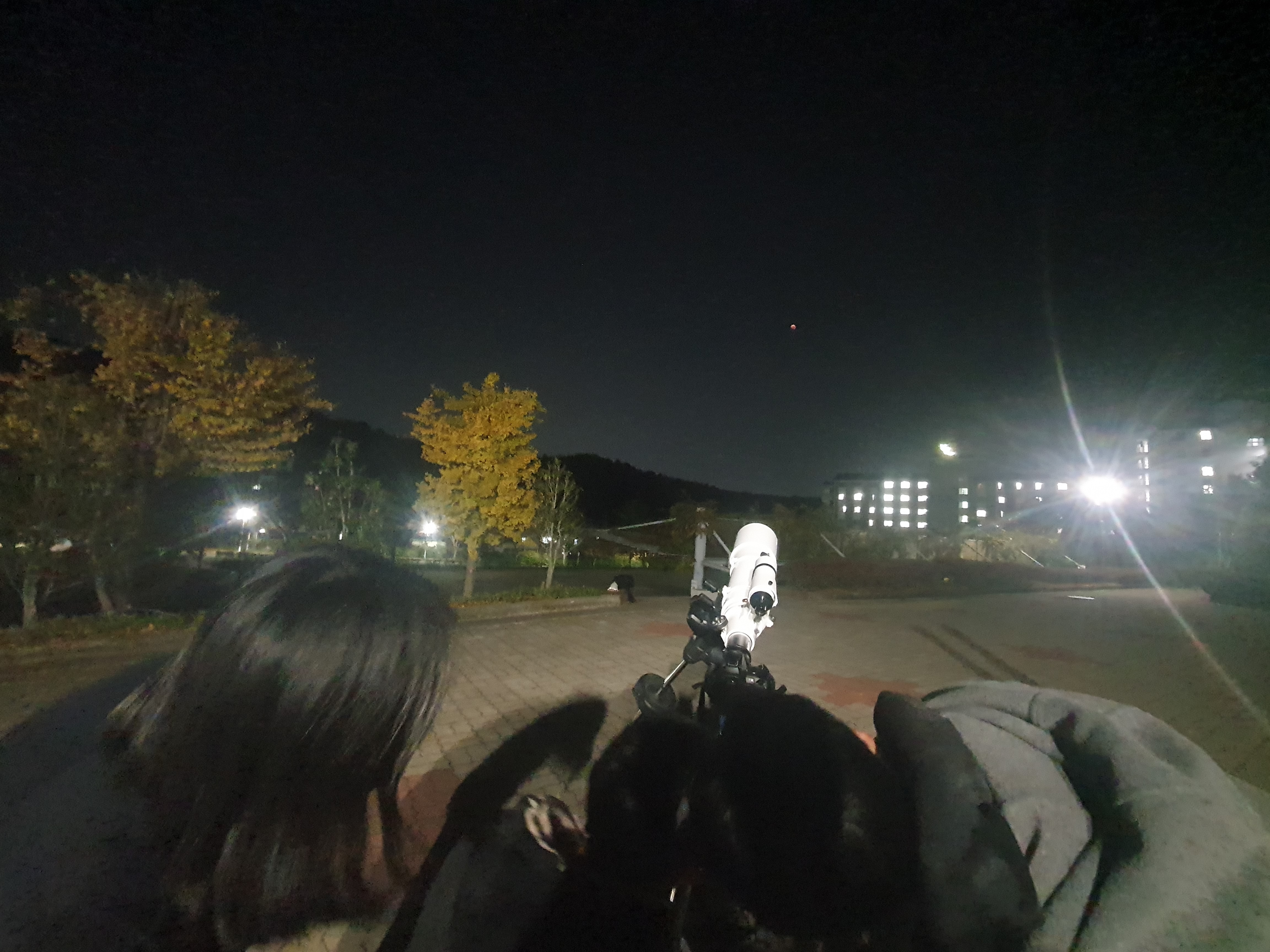 망원경으로 레드문 관찰하기